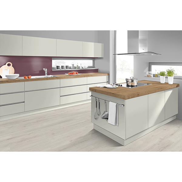 Radna ploča se mora zaštiti kantovanjem ivica abs trakom, i preventivno postaviti pvc lajsna po ivicama, kao zaštita od uticaja vode pri upotrebi. Otpornost na temperaturu radne polče dostiže 150°C, ukoliko sama površina nije pod istovremenim uticajem vlage i vode, usled čega može doći do oštećenja laminata. Radna ploča nije otporna na mehanička oštećenja I upotrebu oštrih sečiva. Montažu sudopere i ugradne tehnike u radnu ploču montira isključivo stručno. Za čišćenje koristiti suvu mekanu krpu i sredstva bez abrazivnih svojstava. |