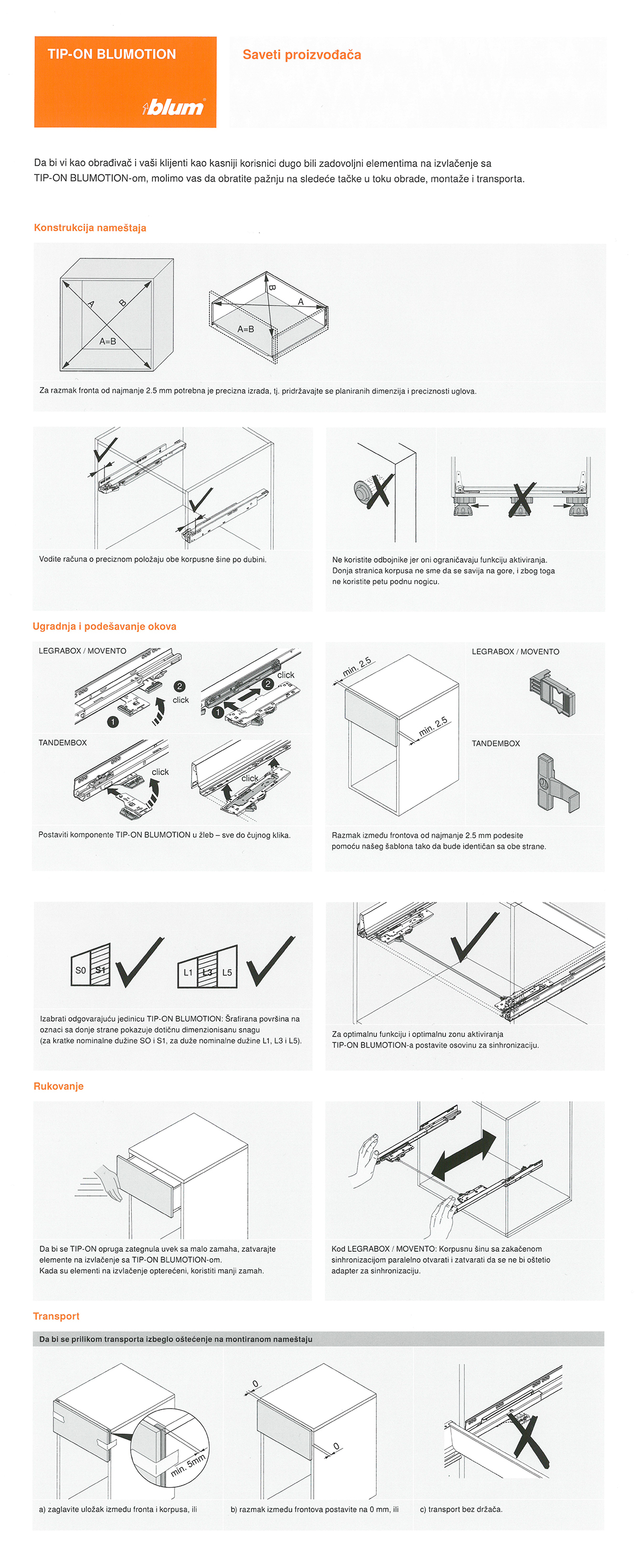 SAVETI PROIZVOĐAČA ZA TIP-ON BLUMOTION