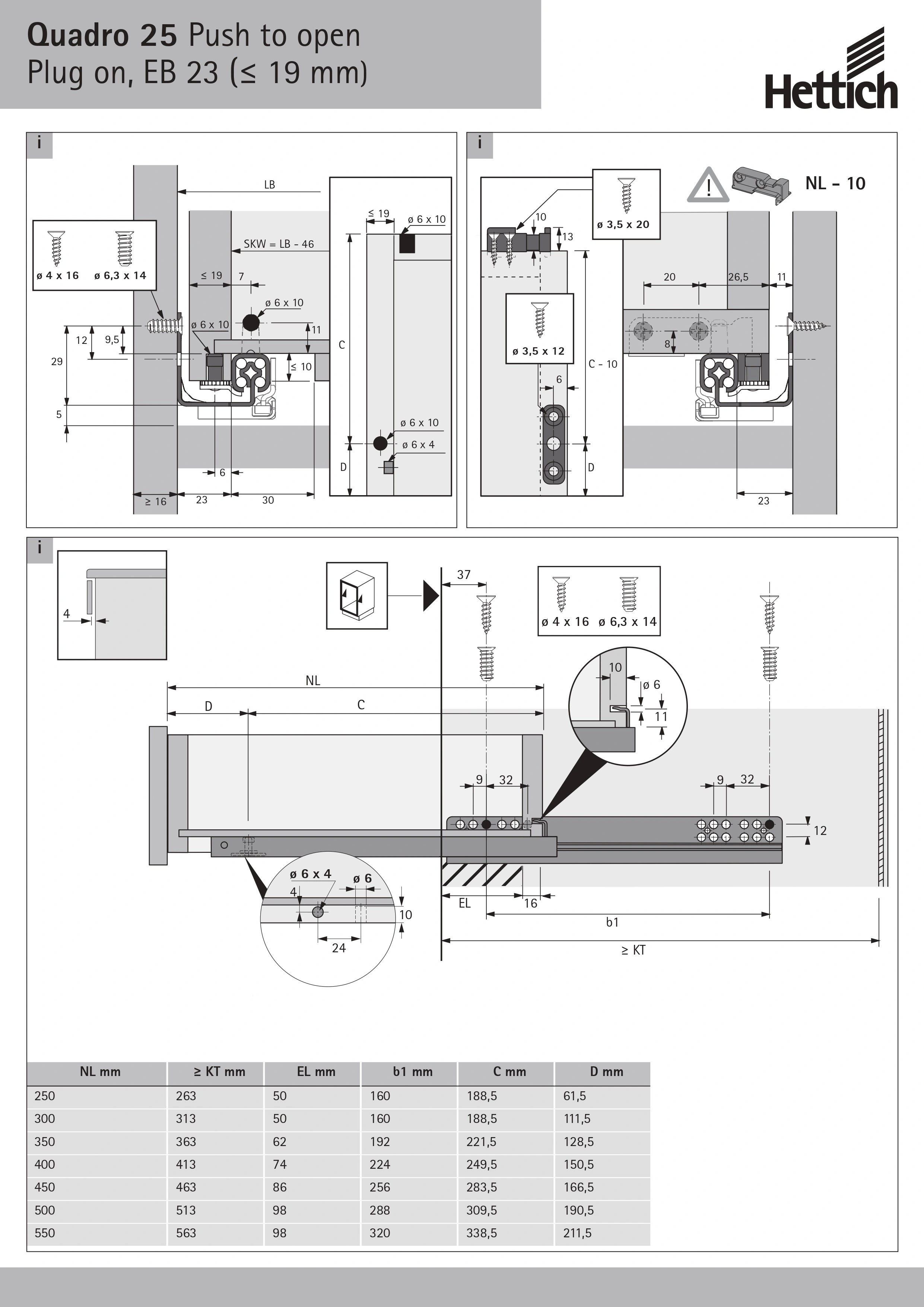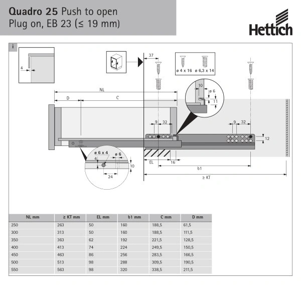 H Klizac Quadro 25 Push del.izvl.do 19mm/25kg 250mm (PAR)