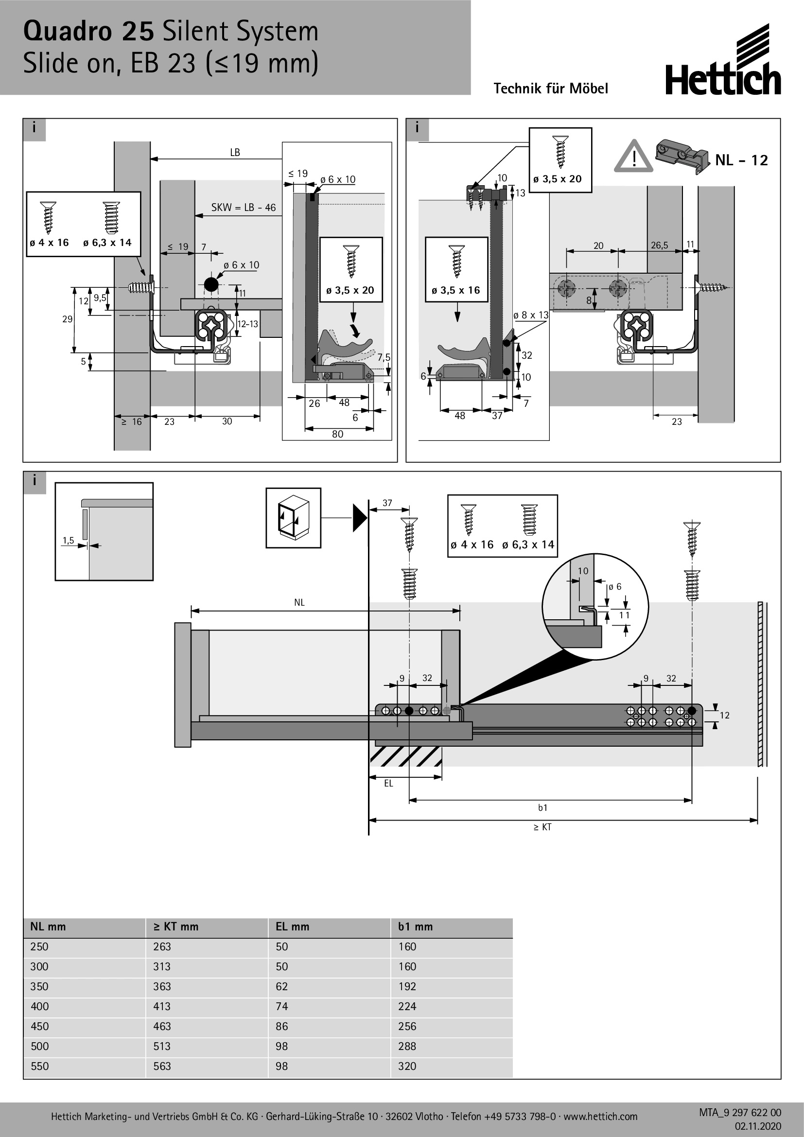 Naziv proizvoda: | H Klizac Quadro 25 Silent del.izvl.do 19mm/25kg 450mm (PAR) |