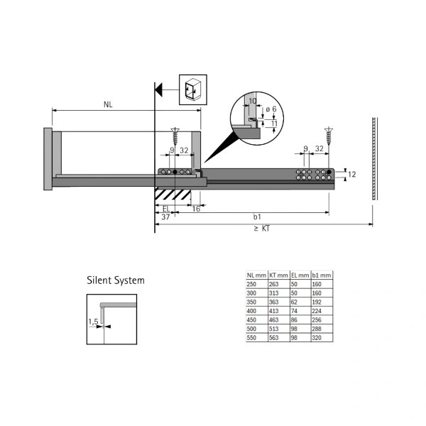 Naziv proizvoda: | H Klizac Quadro 25 Silent del.izvl.do 19mm/25kg 550mm (PAR) |