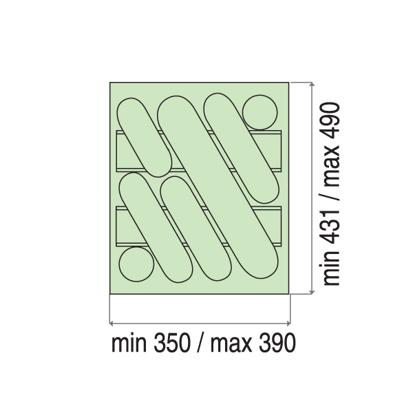 Moguće korigovanje dimenzije Širina: min 350 - max 390 Dubina: min 431 - max 490 |