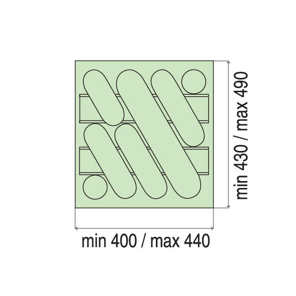 Moguće korigovanje dimenzije Širina: min 400 - max 440 Dubina: min 430 - max 490 |
