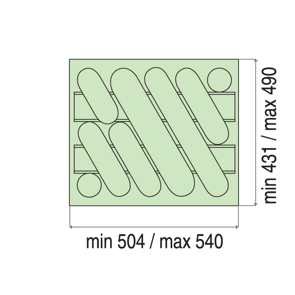 Moguće korigovanje dimenzije Širina: min 504 - max 540 Dubina: min 431 - max 490 |